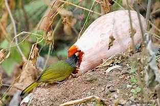 接下来,让我们一起来感受一下“瓜果盛宴”的盛况吧!在图片中,我们可以看到小鸟们或独自享用,或与同伴分享。有的小鸟吃得津津有味,嘴巴周围沾满了瓜汁,看起来就像是一个小“瓜娃子”;有的小鸟则小心翼翼地叼着瓜果,生怕掉地上。